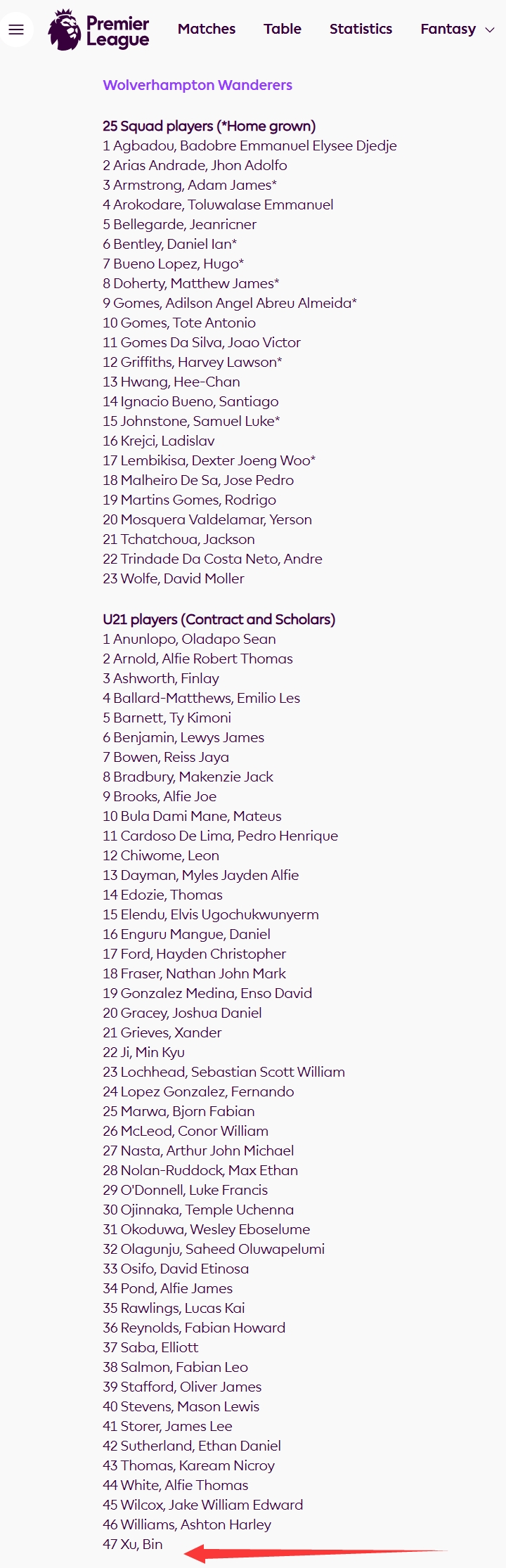 开云app下载-加油!英超官网冬窗更新名单:徐彬的名字出现在狼队U21球员一列