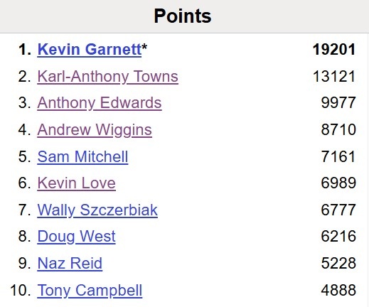 本场比赛过后,爱德华兹生涯总得分突破10000分,森林狼队史第三人,比肩加内特和唐斯。